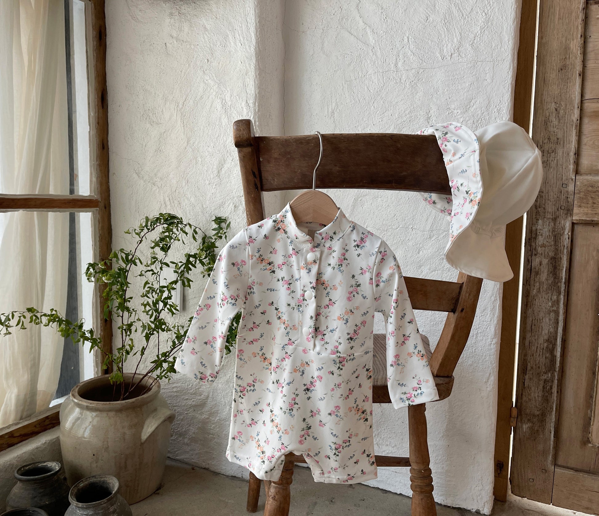 Perfect for some fun on the beach or a fun day at the pool. This one-piece rash guard swimsuit has a stretchy, quick-drying material and a gorgeous floral print to keep your little one stylish and protected.