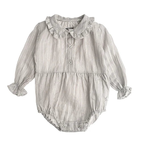 TOCOTO VINTAGE - Lurex Stripe Onesie Light Grey (3M)