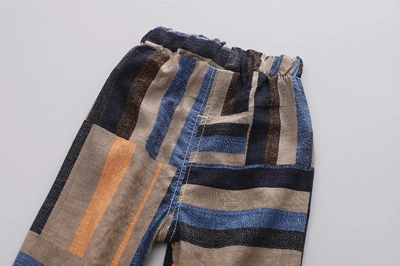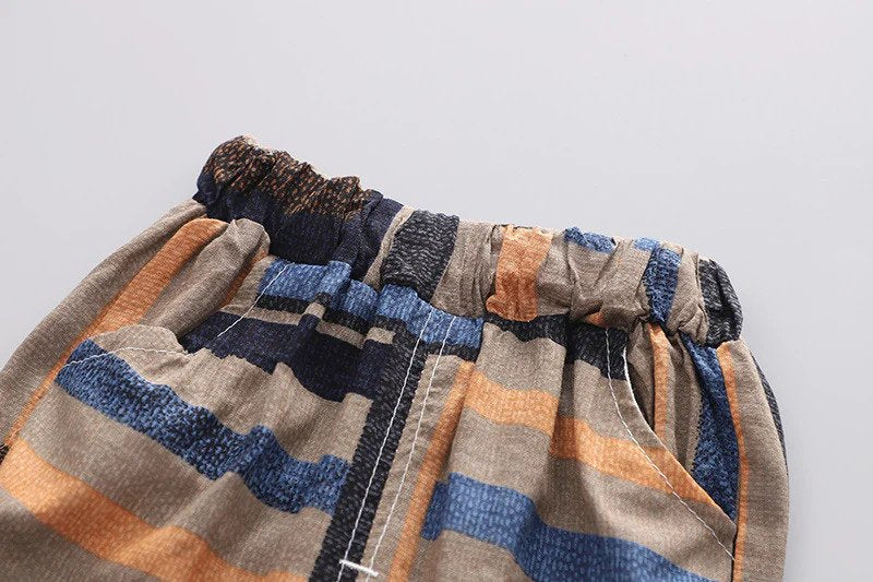 2 Piece Striped Set, lightweight fabric. Elastic banded waist. Adorable as a set or as separates. Cotton blend linen.
